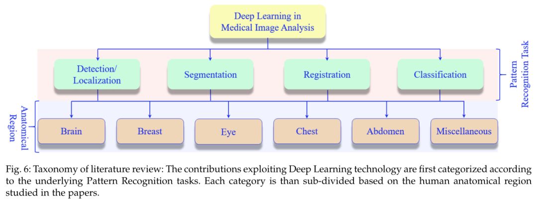 医学图像分析主要包含的模式识别任务是检测/定位、分割、配准、分类。常见的医学影像包括Brain、Breast、Eye、Chest、Abdomen等。