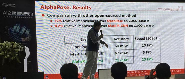 报告的第二部分是关于行为识别。此前他们的实时姿态估计系统 AlphaPose 兼具高表现和高运行速度,在学术研究和应用实践中都非常火热,许多工业界企业都向他们购买了使用许可。不仅如此,AlphaPose 还可以作为许多不同领域、面向多类不同物体的通用型关键点检测器。