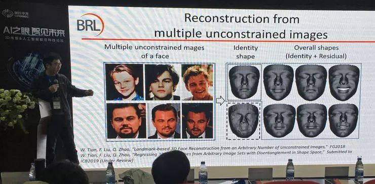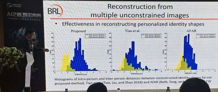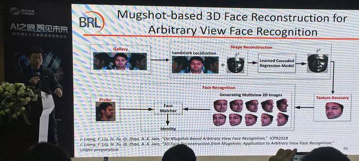 单张图像的人脸重建问题得到较好解决之后,多张图像带纹理重建也就是在单图任务基础上的自然延伸。一个典型的应用是,公安系统的罪犯存档照片包含正面、左、右三种视图,可以利用这些照片重建带有纹理的三维人脸模型,与现有的二维图像采集系统结合以后可以极大提升目标的前 n 位识别成功率,即便二维图像采集系统的图像可以是任意角度的人脸。赵启军副教授还介绍了一个三维人脸重建带来目标犯罪嫌疑人的识别排序大幅提升的真实案例。