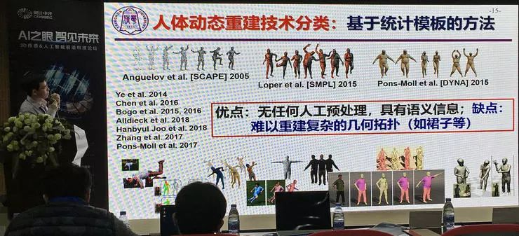 基于统计模版的方法无需提前由人工建模,系统根据数据学习统计模版然后应用。这种方法的问题是难以重建复杂几何拓扑形状的表面,比如裙子等。