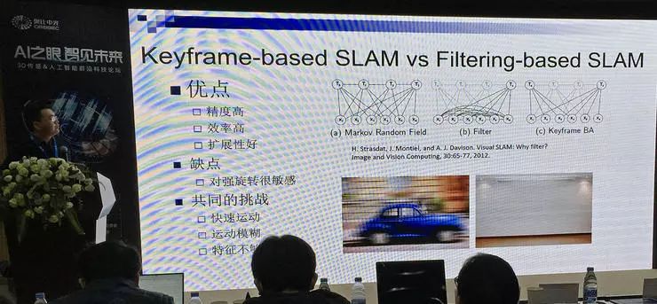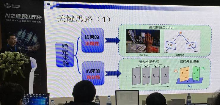 视觉 SLAM 从视觉信号输入,重建场景三维信息的基本原理是多视图几何方程求解。不过,高效、稳定的求解有一定难度,尤其在动态 SLAM 中,场景在变化,有outliner,甚至场景有遮挡。章国锋教授介绍了几个关键思路。