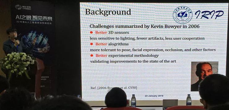 北京航空航天大学计算机学院院长聘副教授、博导黄迪的报告主题是「基于三维人脸数据的身份识别与表情分类」。报告从背景、三维人脸识别、三维表情识别、三维人脸分析的新挑战几个方面综述介绍了这个领域的主要研究和应用脉络。