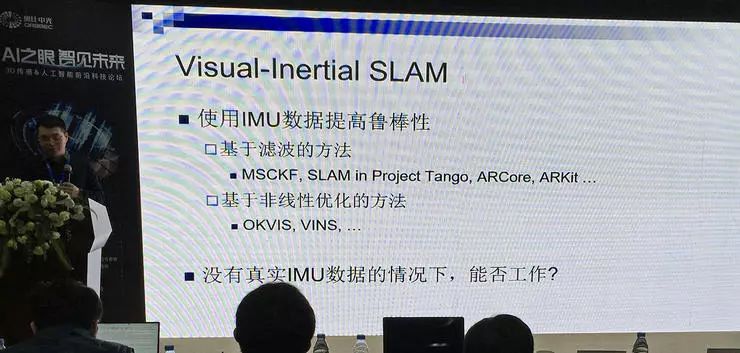 机器人领域的应用中大量使用视觉惯性 SLAM,就是结合机器人 IMU (惯性测量单元)采集的数据计算视角运动,在它的帮助下提高鲁棒性。那么没有搭载 IMU 的设备能否借鉴这种思路呢?由于绝大多数情况下摄像头的移动线速度较低(米/秒 级),影响不大,重点计算角速度即可,章国锋教授认为这种思路是可行的。也就是在没有真实 IMU 数据时,通过采集的数据数据模拟计算 IMU 数据。