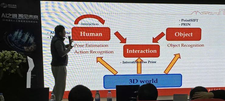 上午的第二个学术报告来自上海交通大学研究员、博导卢策吾。他演讲的主题是三维表征以及行为理解(Behavior Understanding meets 3D Representation),主要介绍了自己团队在这两个方向上的几项近期工作。