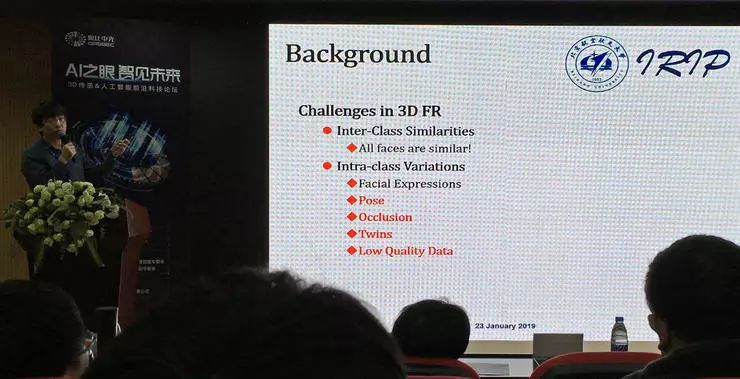 黄迪副教授说道,三维人脸识别的挑战是,所有的人脸都很像!人脸这个大类的相似度很高,所有的脸人脸都有相同的结构。考虑不同身份的人构成的小类的话,类内有一定的变化,来自表情变化、姿态(收集时的不同姿态可能导致三维点云不完整)、遮盖、双胞胎、低质量数据等。而类内的差异无法保证小于类间(不同的人之间)的差异。如今,表情变化的处理已经比较成熟稳定,其他的挑战仍然等待解决。