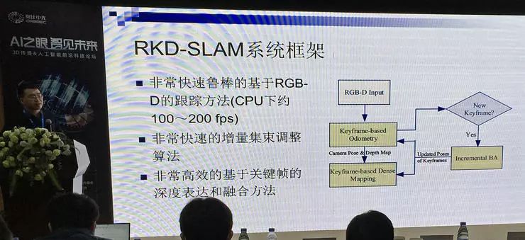 而后还衍生出基于 RGB-D 输入系统的视觉 SLAM 系统 RKD-SLAM,除 RGB 视觉信息之外增加的深度信息可以大幅提高鲁棒性,得以实现非常快速的增量集束调整;基于关键帧的重融合,消除累积误差;其中还使用了多种降低计算复杂度的方法,速度可以快一个数量级。