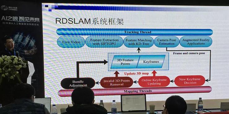浙江大学 CAD&CG 国家重点实验室教授、博导章国锋的报告主题是「视觉 SLAM 技术及应用」。报告中综述介绍了视觉定位地图重建跟踪技术及应用的各方面研究工作。