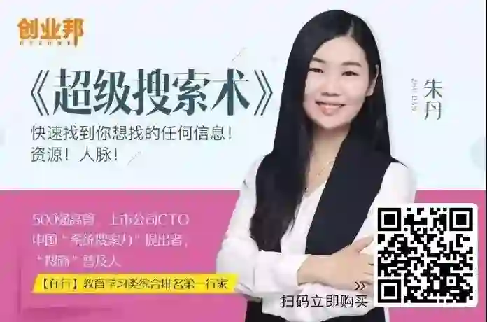 为了帮助更多人学习搜索神技,创业邦邀请到朱丹,请她带着15年搜索经验凝结的精华——《12堂超级搜索术-快速找到任何你想找的信息!资源!人脉!》与大家见面。