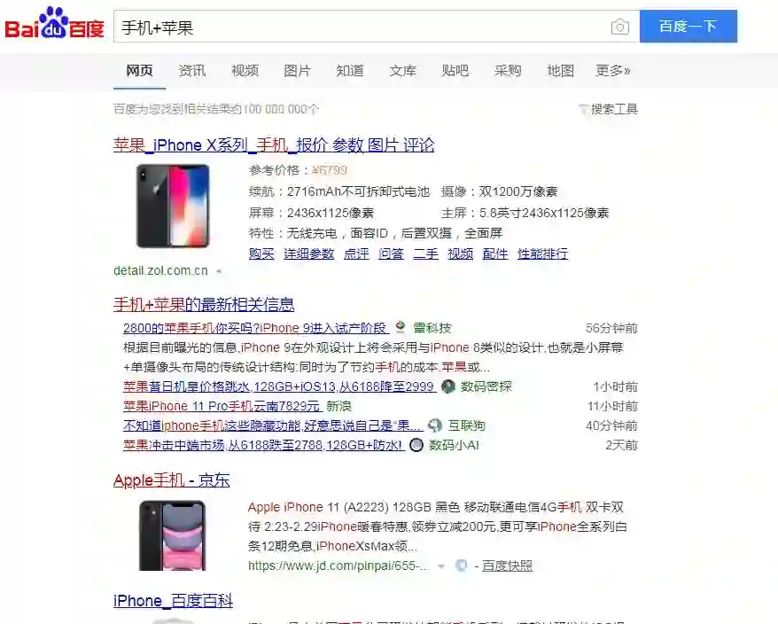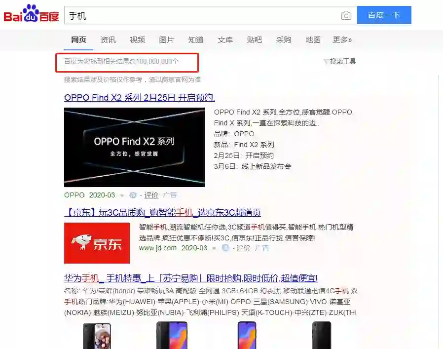 上图就是我以手机为例搜索出来的结果,前面全部都是广告。而且总共有一亿条搜索结果,这个结果显然是杂乱的。