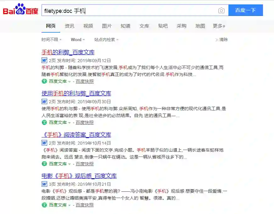 还是以手机为例,我们用filetype:doc语法试试:
