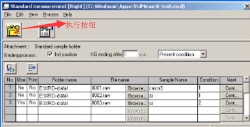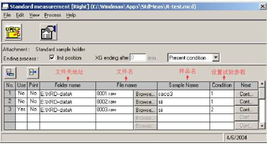 条件设置好以后,关闭条件设置界面,返回主界面(注意:在设置参数的时候,XRD的起始角一般是大于3°,终止角小于140°,否则会使测角仪的旋转臂撞到其他部件,使测角仪受到损坏。)