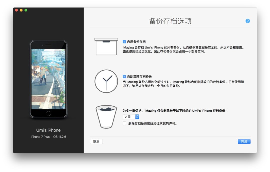 而 iMazing 等第三方软件还会在储存空间不够时自动删除旧备份,也允许你自动删除一定时间前的备份,更为方便。