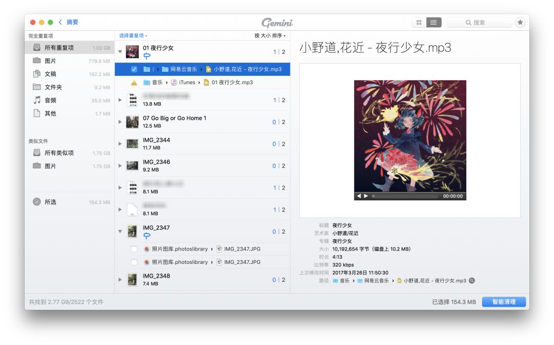 Gemini 2 出自 CleanMyMac 3 的开发者 MacPaw,其 界面设计和交互效果都无可挑剔,甚至获得了 2017 红点设计奖。