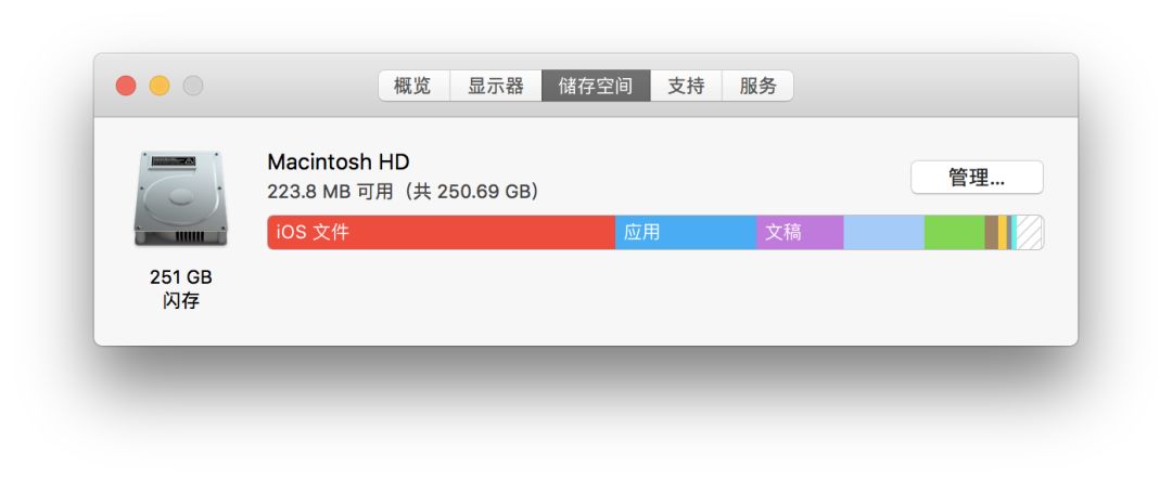 在「关于本机-储存空间」中等待一小会儿,macOS 就会告诉你,究竟哪种类别的文件吞掉了你的硬盘。