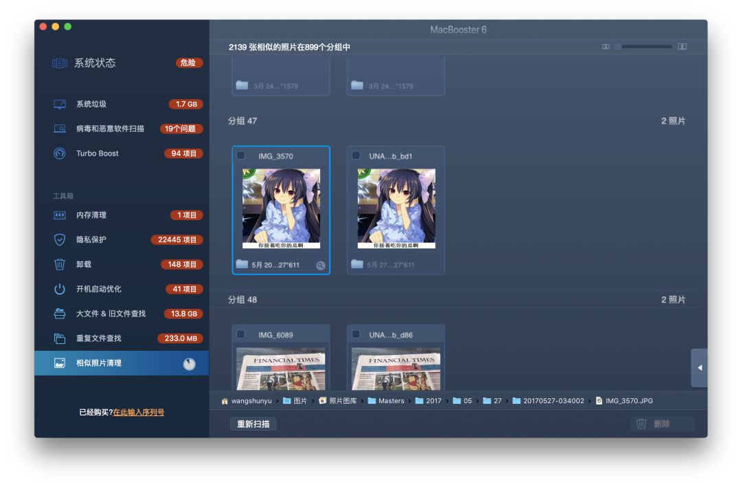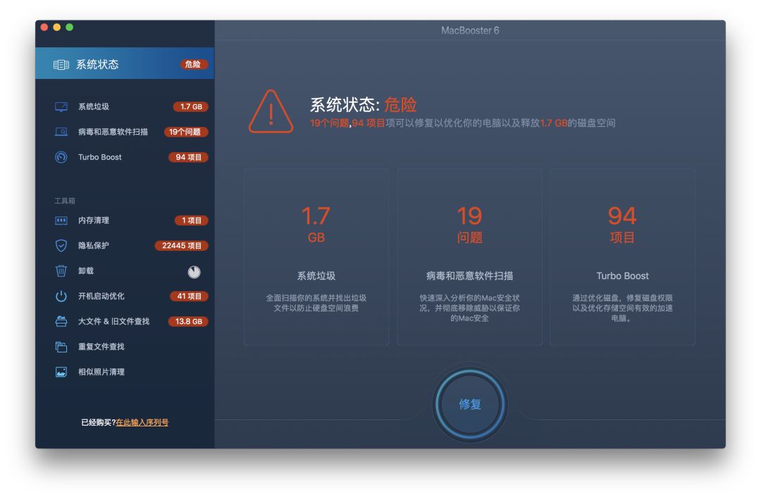 MacBooster 是 AdvancedSystemCare 的开发商 IObit 出品的系统优化软件,除了类似 CleanMyMac 3 的清理功能外,还能查杀病毒、一键加速,可以说是 macOS 版的大数字安全卫士了。