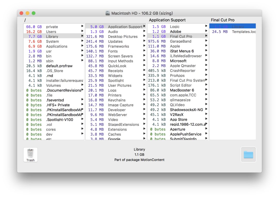 不过, OmniDiskSweeper 却是一款完全免费的磁盘清理实用工具。其界面十分简洁,专注于存储空间优化这一个方面。双击磁盘图标,OmniDiskSweeper 就会列出目录中所有文件夹,并给出其确切大小。拖拽至左侧废纸篓图标内就能彻底删除了。