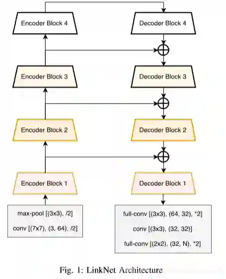 CVPR 2017的LinkNet给出了答案。LinkNet的网络结构如下所示:
