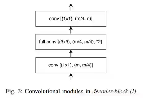 conv 代表卷积,full-conv 代表全卷积,/2代表下采样的步长是2,*2代表上采样的因子是2。在卷积层之后添加 BN,后加 ReLU。左半部分表示编码,右半部分表示解码。编码块基于ResNet18。编解码模块如下所示。
