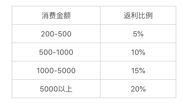 举例说明,如果您在2020年7月1日至2020年9月1日这两个月期间,真实消费了1万元,则返利公式如下: