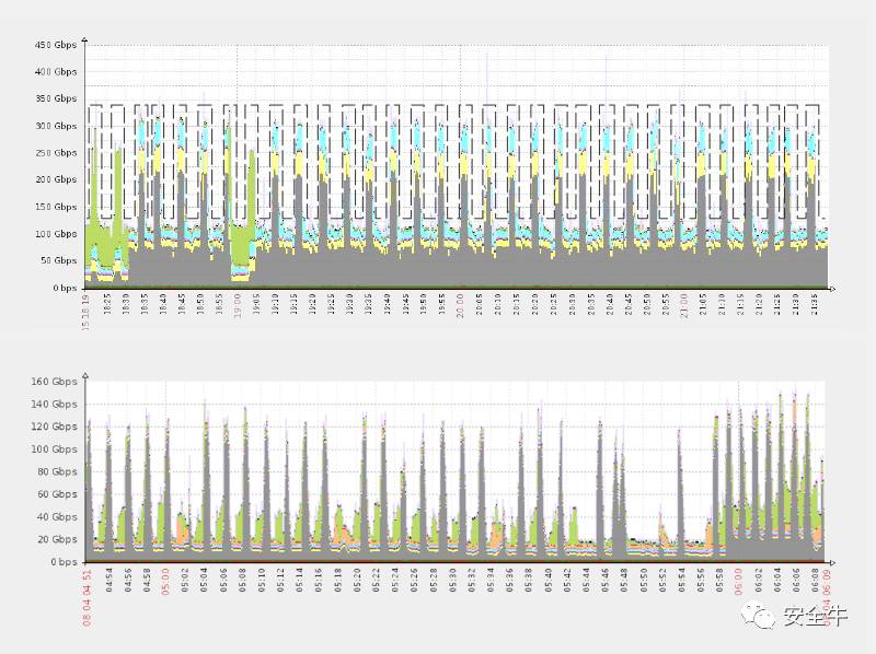 其次,脉冲式DDoS的攻击火力也很能说明问题;明显不是放大式的数百Gbps攻击,而需要成熟而强大的僵尸网络支持。