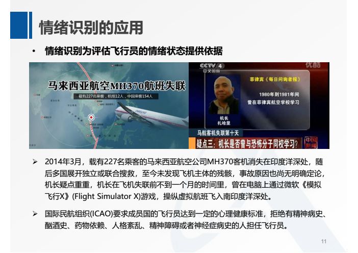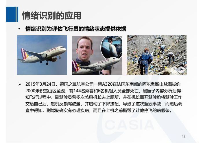 2015年3月份德国之翼航空公司在法国阿尔卑斯山脉坠毁。后来得知副驾驶员在飞行过程中多次怂恿机长上厕所,机长离开后他反锁驾驶舱,启动下降按纽,导致坠毁。调查中得知副驾驶确实有心理疾病,上一个例子是推测,而后一个已经被证实。所以飞机员的状态对飞行安全很重要。情绪识别准确的话,可以避免此类灾难的发生。