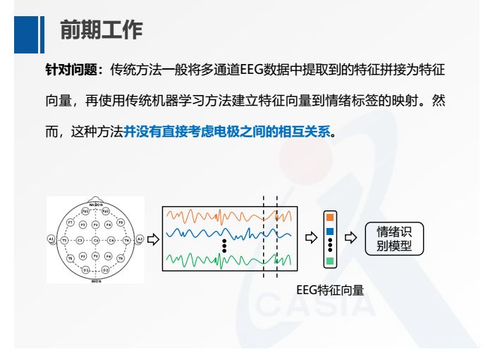 现在出现了基于脑电识别情绪的方法,相较于传统情绪识别方法,有更高的可靠性。基于脑电的方法要求被试者戴一个电极帽,然后采集大脑的信号。所以它的数据包括空间和时间,相当于四维的时空数据,每一个电极相当于一个时间序列。