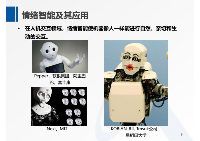 谭铁牛院士也曾说过“机器人有智商没情商”。在人机交互领域,Pepper、MIT以及日本一些公司做出的机器人能够像人一样自然亲切地进行交互。