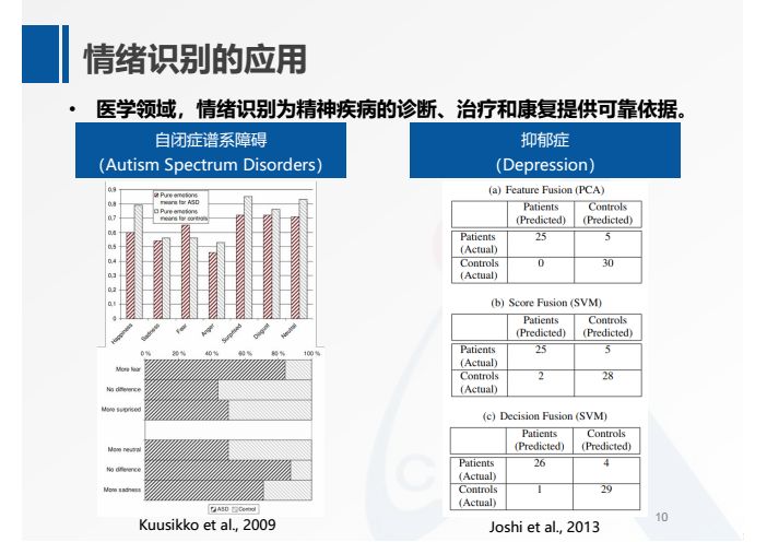 在医学领域,情绪识别还为精神疾病诊断治疗提供依据。比如自闭症的诊断,利用复杂的量表检测比较困难。如果有一些比较好的情绪识别的工具,比如戴脑电,在病人活动的时候进行实时监测,可以对诊断提供帮助。同样还可以应用到自闭症的诊断和治疗中。