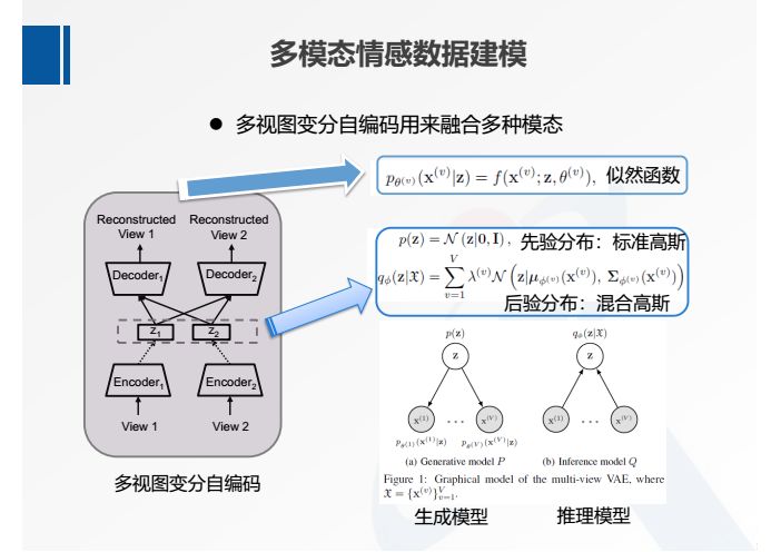 我们用多视图变分自编码来融合多种模态。我来分享一下多视图变分自编码,我们现在有两个模态,一个模态是脑电,一个模态是眼动,脑电和眼动都反映情绪。