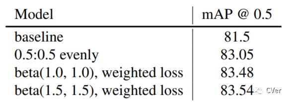注意mixup中最重要的超参数就是α 和 β ,不同的值对结果(mAP)会有很大影响,结果如下所示: