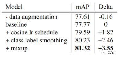 3)在不改变网络结构和损失函数的情况下,基于现有模型,我们 achieved up to 5% out of 30% absolute average precision。