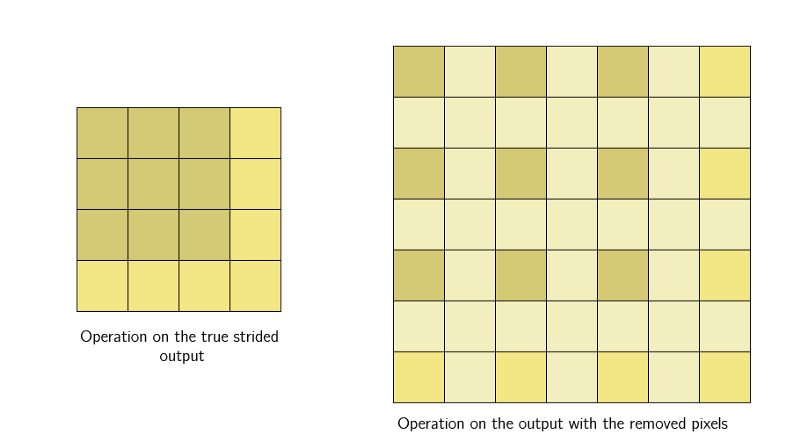 步幅卷积背后的想法是我们只滑动固定距离的间隔,并跳过中间的网格。