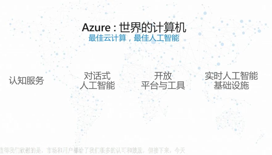 Azure汇聚了微软在人工智能领域的全部投入与技术积累,是开发、部署、运行人工智能的最佳云平台,同时也是将智能云与智能边缘融会贯通的关键环节。