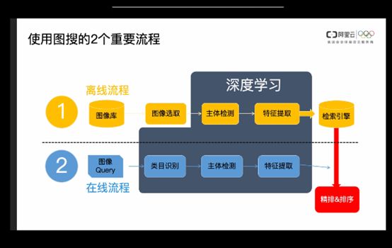 1.要建索引库。客户要把所有图片离线上传,把图片库传到阿里云上面做一个特征的提取,提取之后我们会建立一个检索引擎。