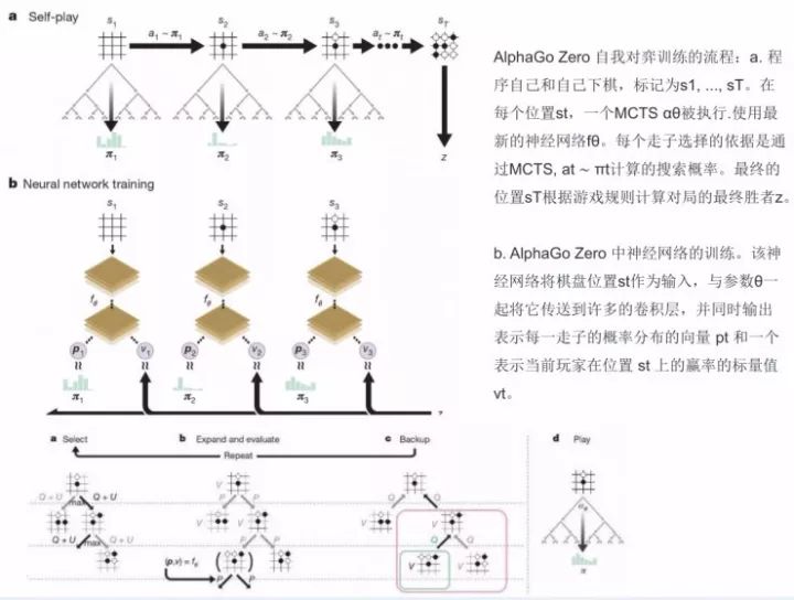 第一,神经网络权值完全随机初始化。不利用任何人类专家的经验或数据,神经网络的权值完全从随机初始化开始,进行随机策略选择,使用强化学习进行自我博弈和提升。