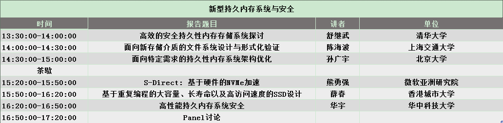 本论坛将于 CNCC2019 中国计算机大会第三天(10月19日)在苏州金鸡湖国际会议中心 A104会议室举行,将讨论新型持久内存系统的前沿和关键技术,包括持久内存系统的体系结构、安全和加密方法、高并发访问和管理机制、数据一致性保证机理等。