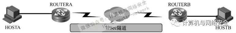 当在IPSec设备是由路由器或防火墙设备提供时,即数据包进行安全传输的起点或终点不为数据包的实际起点和终点时,则必须使用隧道模式,因为这时需要对原始IP数据包中的私网地址进行转换(通过重封装,添加新IP报头来实现,而不是NAT),否则不能在公网Internet中进行路由转发。此时的IPSec隧道就是在两端的IPSec设备之间。