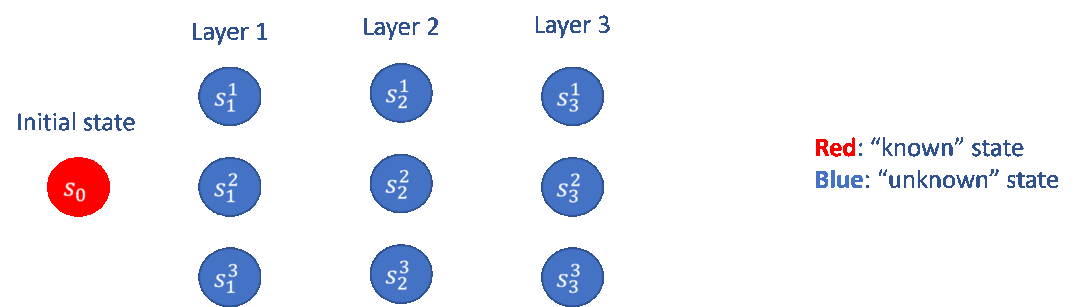 图5:“逐层推进”的探索策略(以3层的离散马尔科夫决策过程为例)