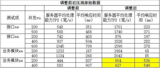 在整个调整过程中,经历了多次压测,下面展示部分测试数据: