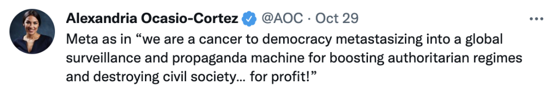 上周,纽约女议员 Alexandria Ocasio-Cortez 一条推文将Facebook比作「癌症」,但却在上面花费了数百万美元。