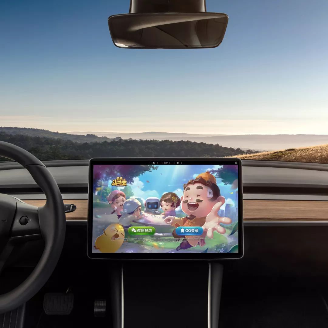 在12月19日,TGC腾讯数字文创节活动上,特斯拉展示了即将通过OTA空中升级推出的娱乐化新功能——“欢乐斗地主”、“欢乐麻将”、“欢乐升级”三款游戏和优酷、bilibili等视频平台。