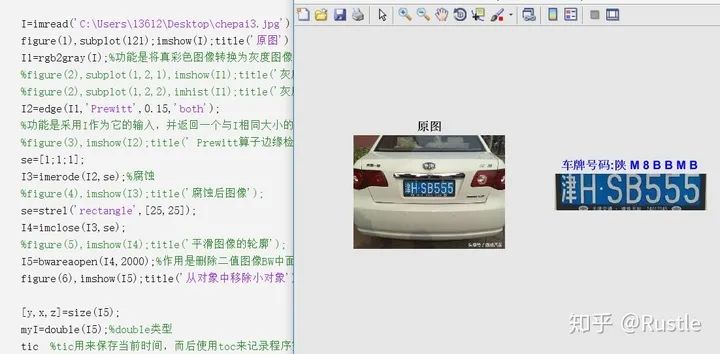 让我们再看一个例子,如图1-2 ,为经典的车牌检测算法,将原始图像进行灰度图转换、边缘检测、形态学腐蚀膨胀等操作,得到车牌区域,随后将车牌区域进行切割(这个是笔者刚入门时做的小demo,还没有用到深度学习模型,用的是knn,因此识别结果很差,各位看官会心一笑就好了哈)
