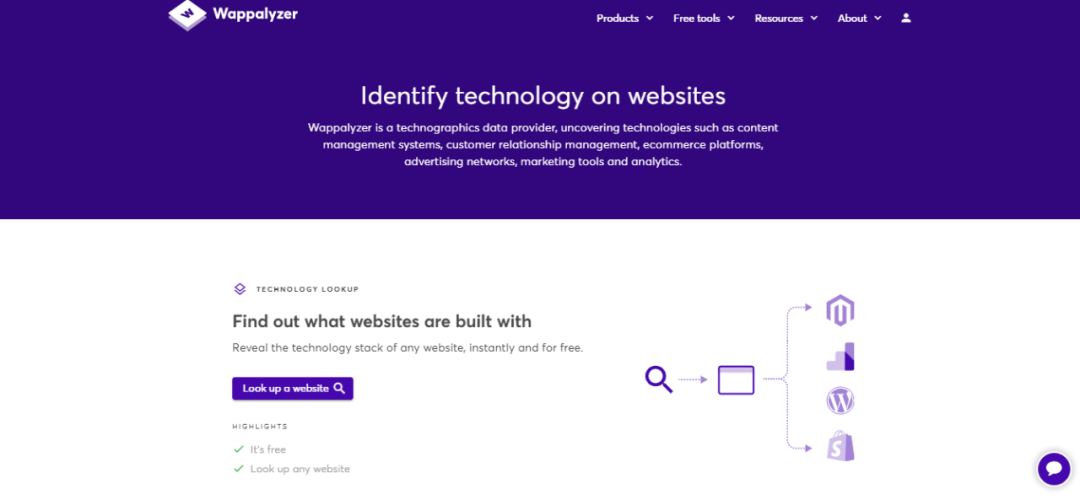 Wappalyzer 是一家技术性数据提供商,向你提供一个网站的技术性数据,例如内容管理系统(CMS)、客户关系管理(CRM)系统、营销工具、分析工具、JavaScript 库、UI 框架甚至使用的字体库。