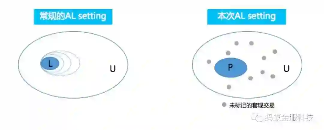 然而在本场景,我们更像是一个PU setting,专家多次标注,扩充P(Positive)集合,Learner则在每次迭代的时候,基于PU Learning进行学习。