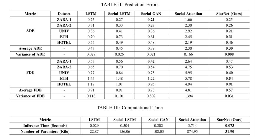 [1] A. Alahi, K. Goel, V. Ramanathan, A. Robicquet, F. Li and S. Savarese, “Social lstm: Human trajectory prediction in crowded spaces,” in 2016 IEEE Conference on Computer Vision and Pattern Recognition (CVPR). IEEE 2016, pp. 961-971.