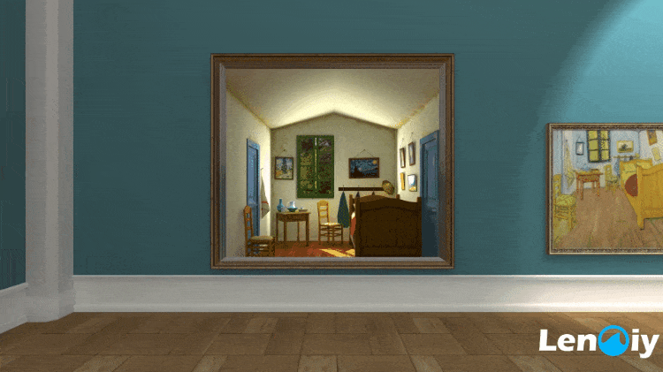 比如在欣赏梵高《在阿尔勒的卧室》这幅著作时,你还可以“住”进梵高最喜欢的卧室,体会梵高如何在这里获得绘画的灵感,感受梵高在得知好友高更到访时的喜悦……