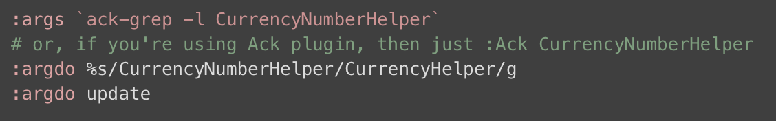 Thiago A. 也在评论中提到,如果你使用较新的 Vim 版本,这将会更简单,可简单地使用 cdo 和 cfdo 来完成这个需求: