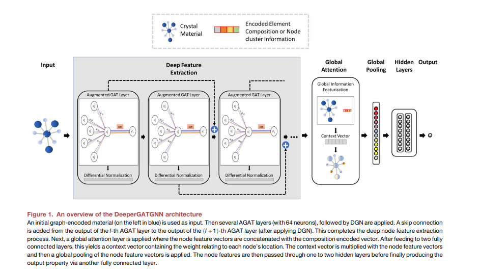 基于机器学习的材料性能预测模型是一种很有前途的新材料发现方法,其中图神经网络(GNNs)由于具有从晶体结构中学习高级特征的能力而表现出最好的性能。然而,现有的GNN模型缺乏可扩展性,超参数调优复杂度高,且由于过平滑而限制了性能。我们提出了一种可扩展的全局图注意力神经网络模型DeeperGATGNN,该模型具有可微群归一化(DGN)和跳跃式连接,用于高性能材料的性能预测。我们的系统基准研究表明,我们的模型在6个数据集中的5个上实现了最先进的预测结果,比现有的5个GNN模型的性能高出10%。我们的模型在图卷积层方面也是可扩展性最强的,它允许我们训练非常深的网络(例如>30层),而不会显著降低性能。我们的实现可以在https://github.com/ usccolumbia/deeperGATGNN上找到。