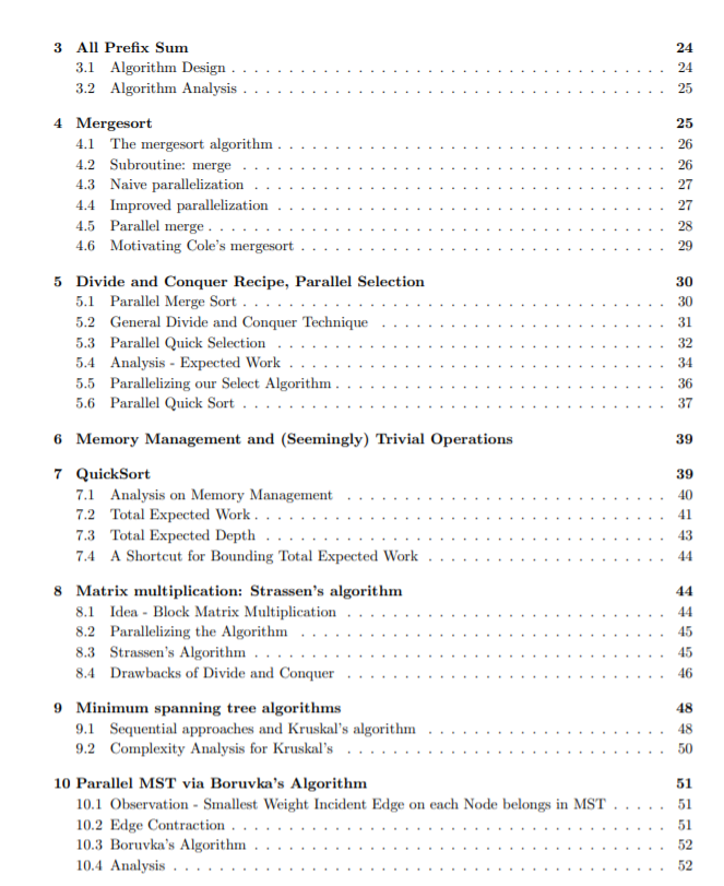 第一节课的重点是分析今天能够进行并行计算的典型个人计算机中的算法行为,第二节课的重点是今天能够进行分布式计算的典型公共云中的此类个人计算机集群中的算法行为。我们将从第1节中简要介绍的基本原理开始,并努力理解过去几十年来算法的重大突破。并行计算是指在一台机器上使用多个处理器和共享内存进行计算。并行计算和分布式计算虽然密切相关,但它们都提出了独特的挑战——主要是并行计算情况下的共享内存管理和分布式计算情况下的网络通信开销最小化。理解并行计算的模型和挑战是理解分布式计算的基础。课程内容反映了这一点,首先在并行环境中涵盖各种经典的、数值的和图形的算法,然后在分布式环境中涵盖相同的主题。目的是强调每个设置带来的独特挑战。