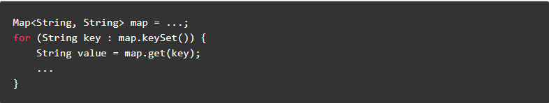 当循环中只需要 Map 的主键时,迭代 keySet() 是正确的。但是,当需要主键和取值时,迭代 entrySet() 才是更高效的做法,比先迭代 keySet() 后再去 get 取值性能更佳。